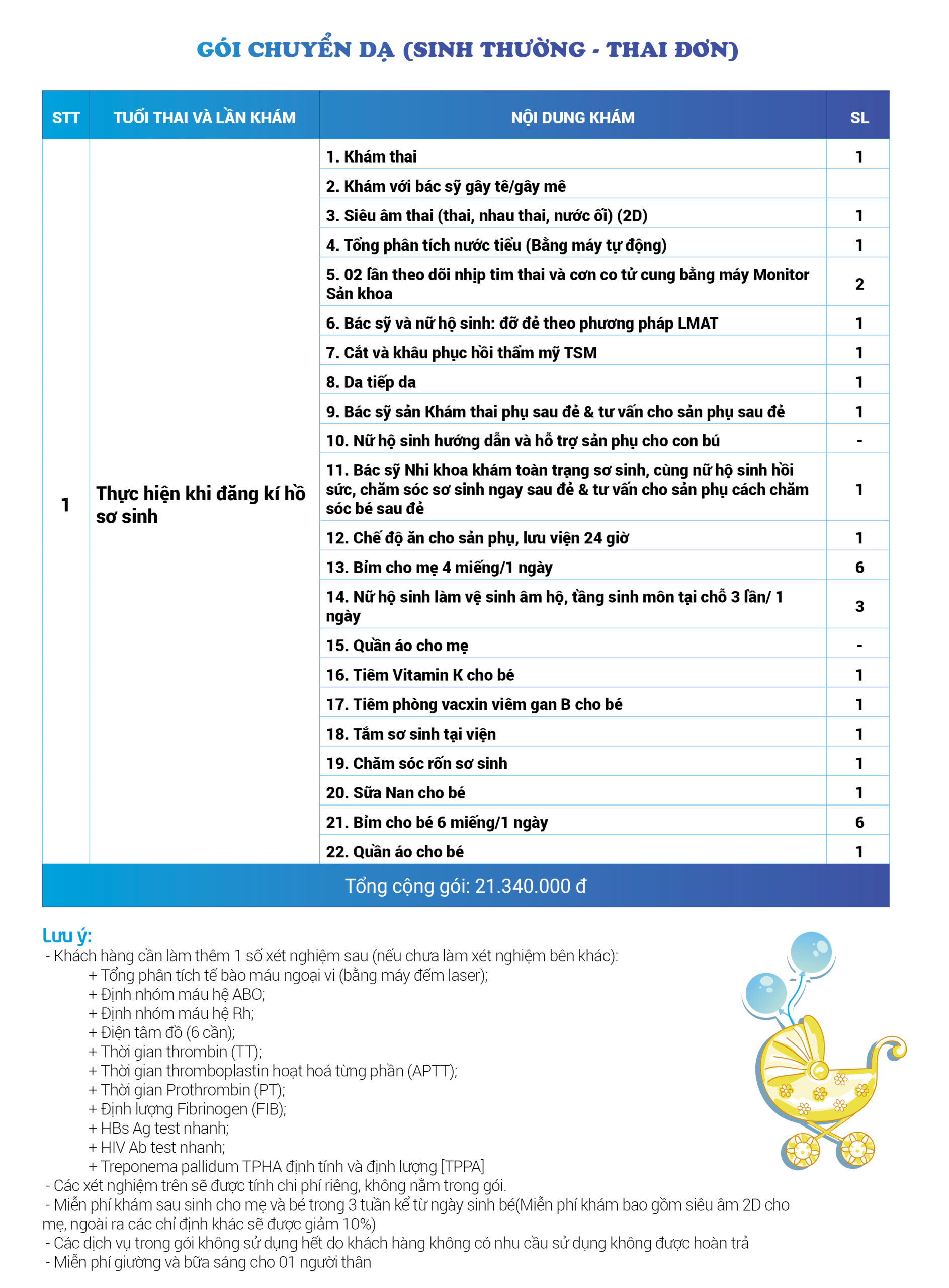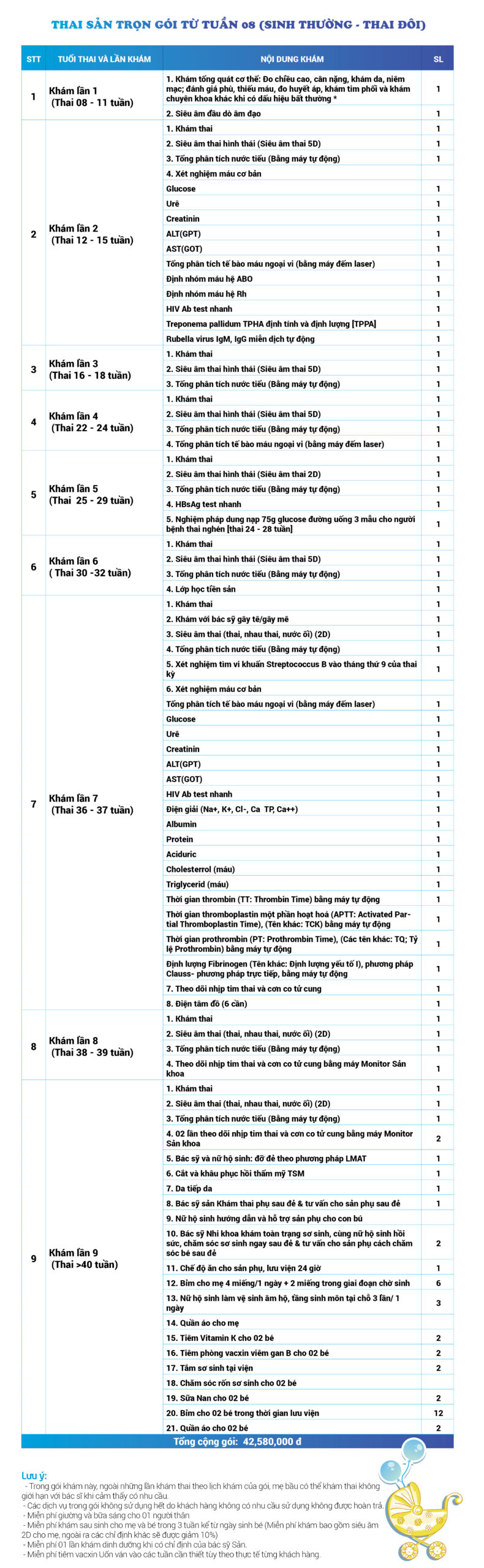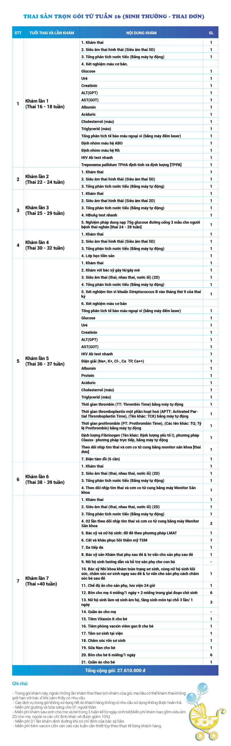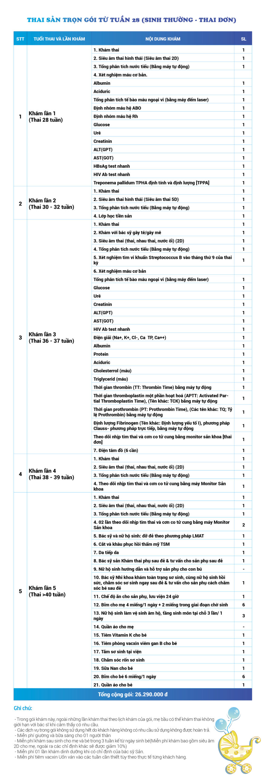 | 26 | Gói Thai sản trọn gói từ tuần 16 (Sinh mổ) - Lần 1 - Thai đơn - Gói Vip | 56.980.000 | 0 |