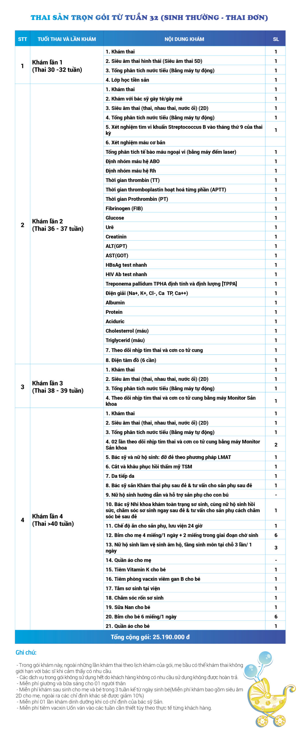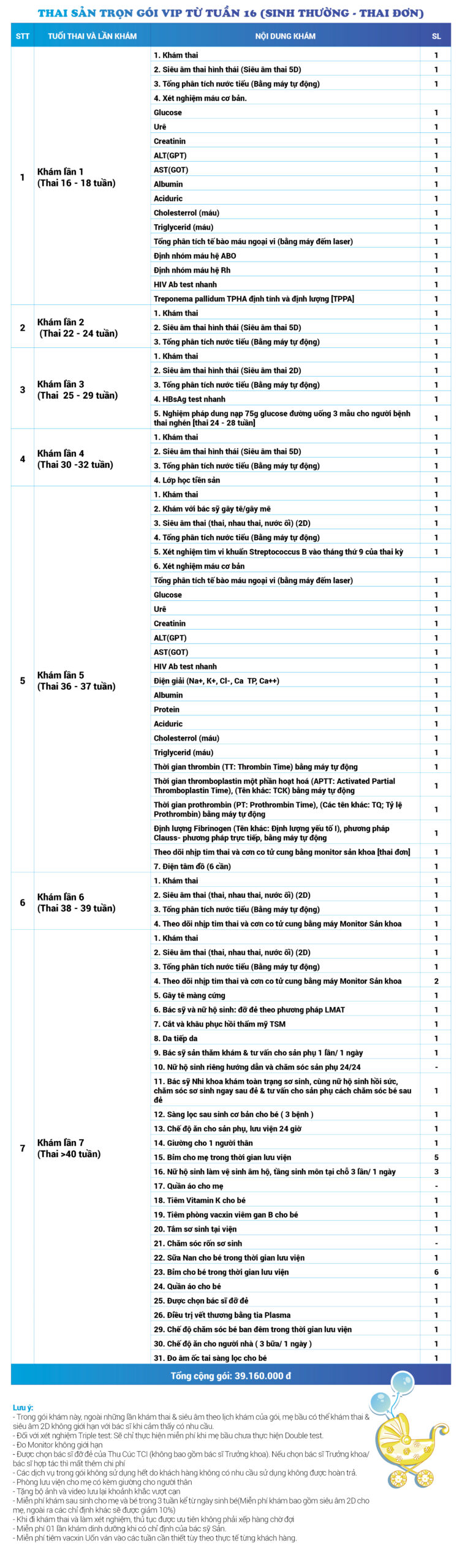 | 25 | Gói Thai sản trọn gói từ tuần 16 (Sinh thường) - Thai đơn - Gói Vip | 39.160.000 | 0 |