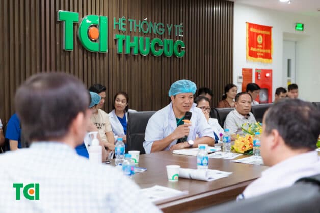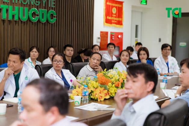 Tại TCI, đội ngũ y bác sĩ thường xuyên được tham gia các buổi đào tạo, chia sẻ, trao đổi chuyên môn cùng các chuyên gia đầu ngành. Đây là một cơ hội tốt để được cập nhật, trao đổi các kiến thức và nâng cao năng lực. Ngoài ra, các y bác sĩ có cơ hội tiếp cận các kỹ thuật mới ngày một tiên tiến cũng như trau dồi tay nghề và kinh nghiệm xử lý các tình huống xảy ra. Điều này cũng chứng tỏ những nỗ lực không ngừng nghỉ trong nâng cao chất lượng khám, chữa bệnh cho bệnh nhân tại Bệnh viện Đa khoa Quốc tế Thu Cúc TCI.