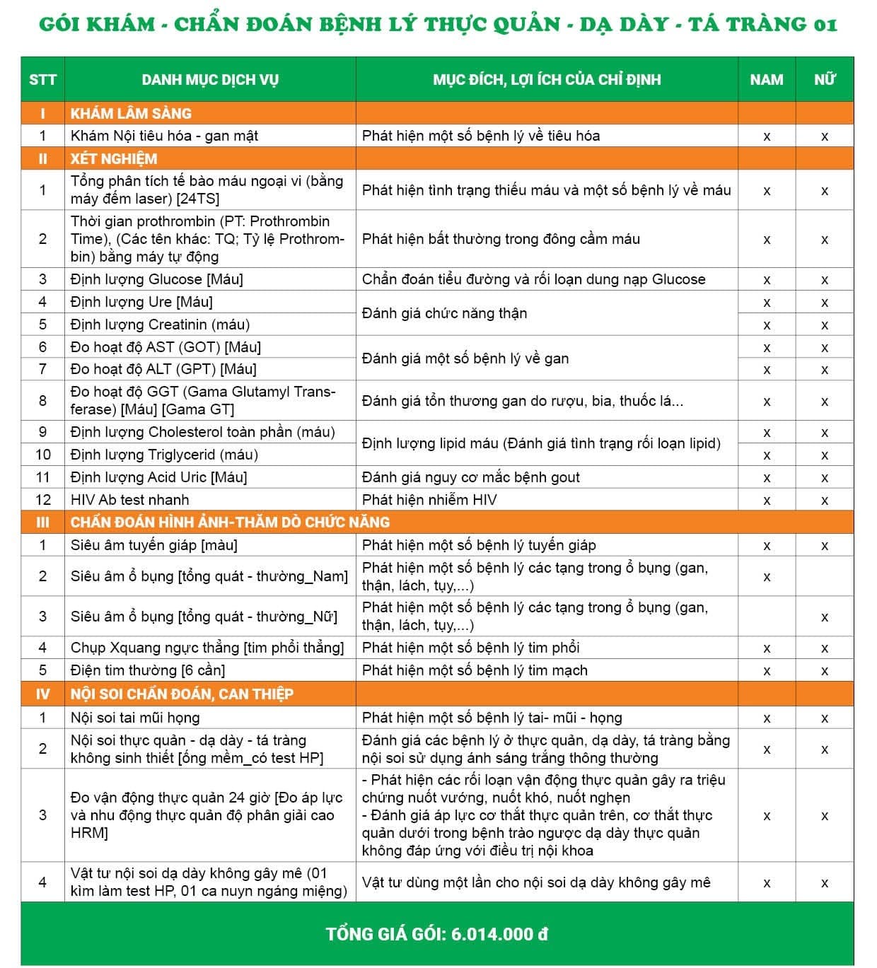 Gói khám – Chẩn đoán bệnh lý thực quản – dạ dày – tá tràng 01