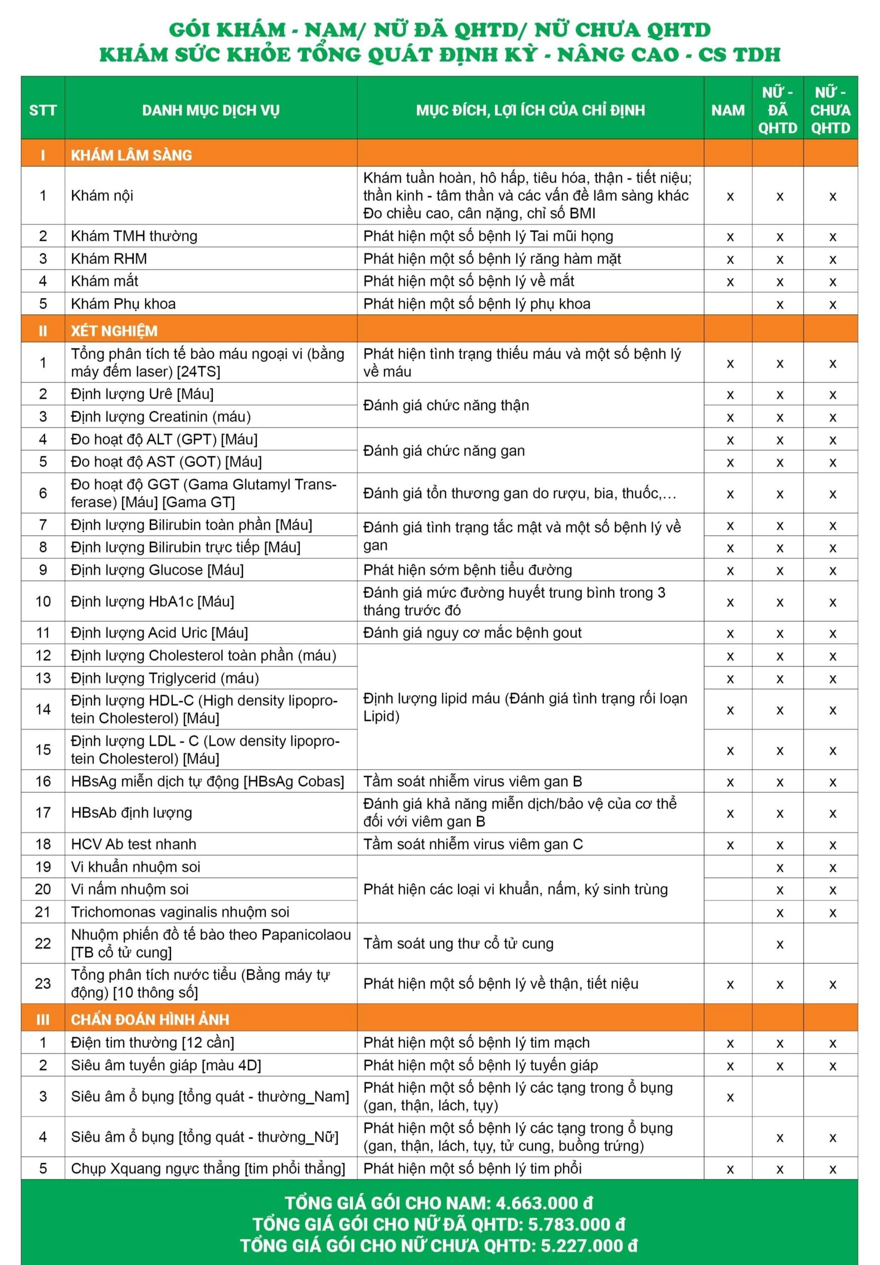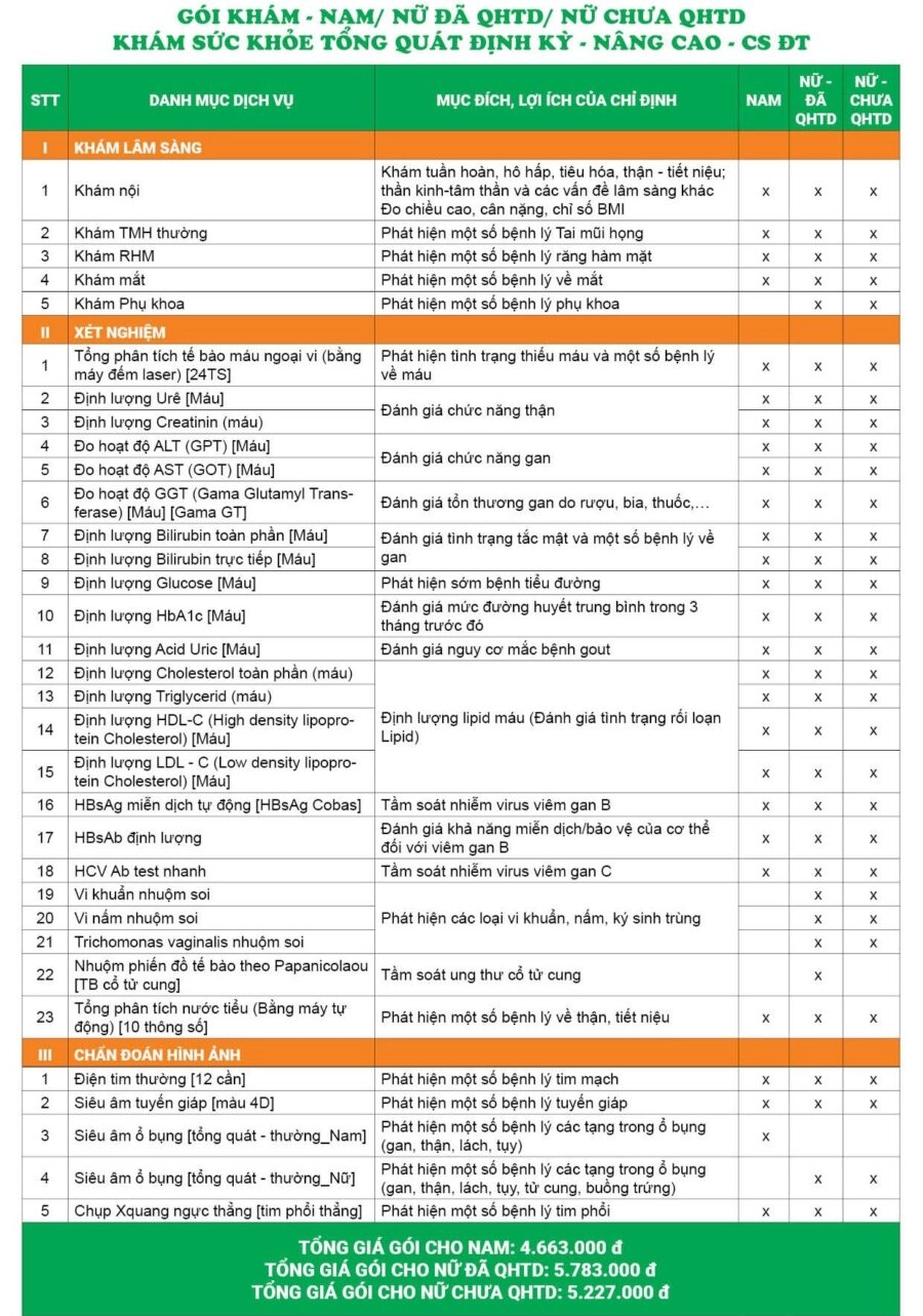 2. Danh mục Gói khám sức khỏe tổng quát định kỳ – Nâng cao