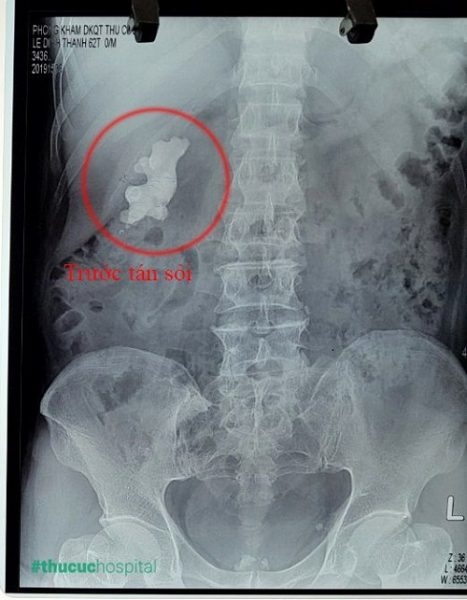 Bệnh nhân L.Đ.Thanh (62 tuổi) tìm đến Bệnh viện Đa khoa Quốc tế Thu Cúc với tình trạng rất phức tạp. Phim chụp CT cho thấy thận tráiphải có sỏi to, kích thước 7 cm, sỏi phân nhánh, lấp kín các đài bể thận. Bác sĩ CKII Phạm Huy Huyên (Phó Giám đốc – Trưởng khoa Ngoại của Bệnh viện Thu Cúc) xác định đây là loại sỏi san hô rất hiếm gặp, đặc biệt kích thước rất lớn. Bình thường sỏi thận khoảng 2cm đã được xếp vào loại to nhưng sỏi của bệnh nhân Thanh lớn hơn gần nhiều lần. Tiền sử 2 lần mổ lấy sỏi cũng là vấn đề đáng lo ngại. Nếu tiếp tục mổ mở để lấy sỏi như trước đây, người bệnh có nguy cơ gặp phải nhiều biến chứng nguy hiểm, chưa kể vết mổ dính cũng sẽ gây khó khăn cho bác sĩ trong quá trình phẫu thuật. Tuy nhiên nếu không điều trị sỏi sẽ tàn phá các nhu mô thận, làm mất chức năng thận, có thể phải cắt thận.