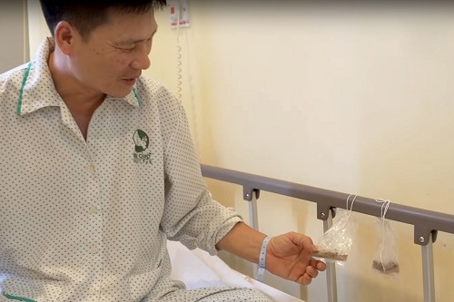 - 2 túi chứa đầy sỏi tán vụn từ tảng sỏi thận “khổng lồ” được bệnh nhân treo ở giường.