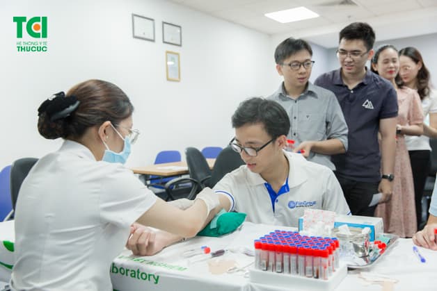 – Hỗ trợ lấy máu tận trụ sở doanh nghiệp với đầy đủ trang thiết bị y tế thiết yếu, giúp tiết kiệm thời gian và chi phí di chuyển, đồng thời không gây gián đoạn hoạt động sản xuất kinh doanh của doanh nghiệp.