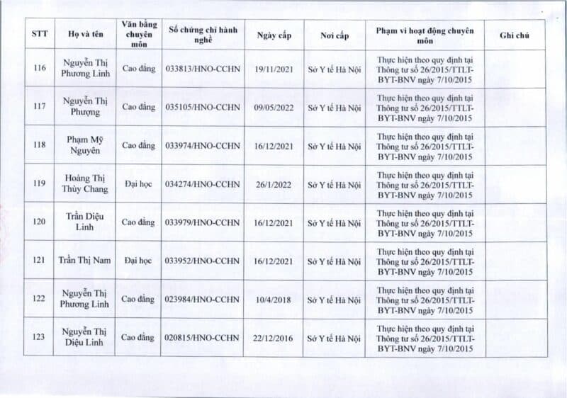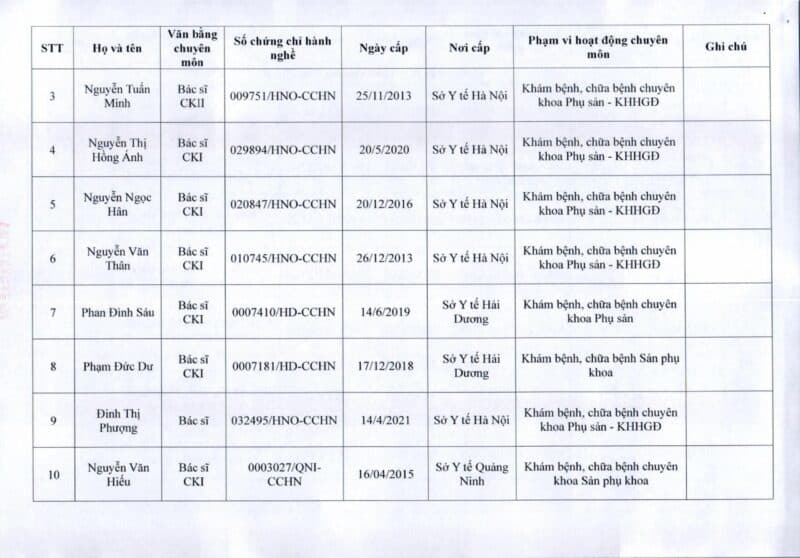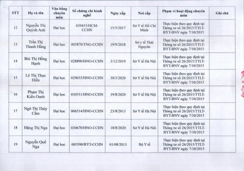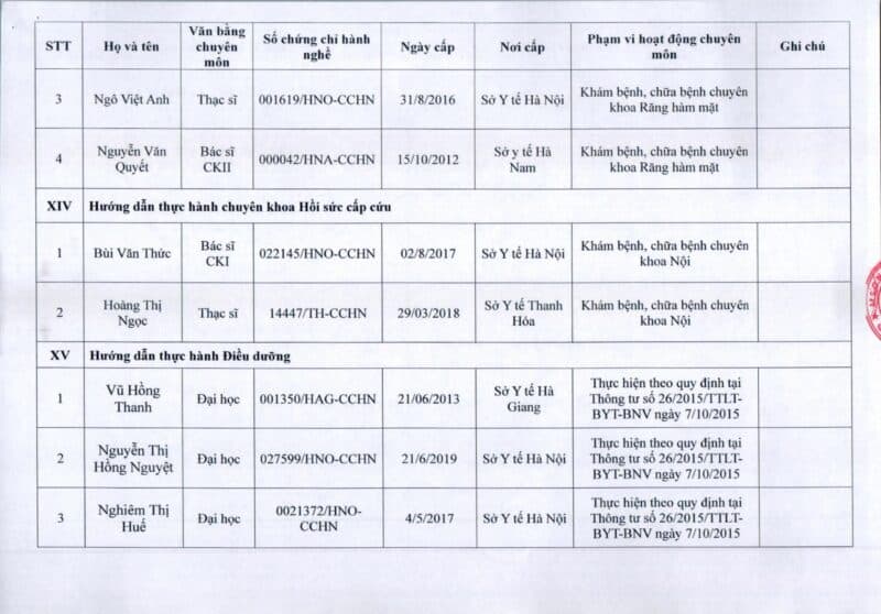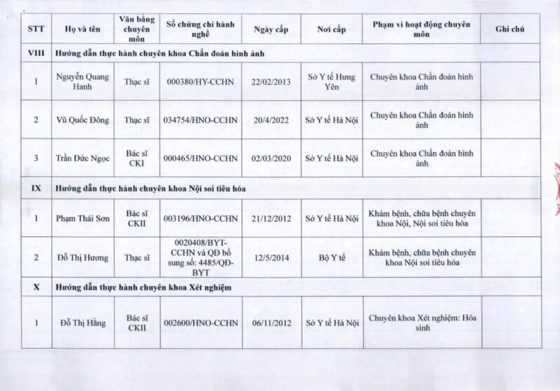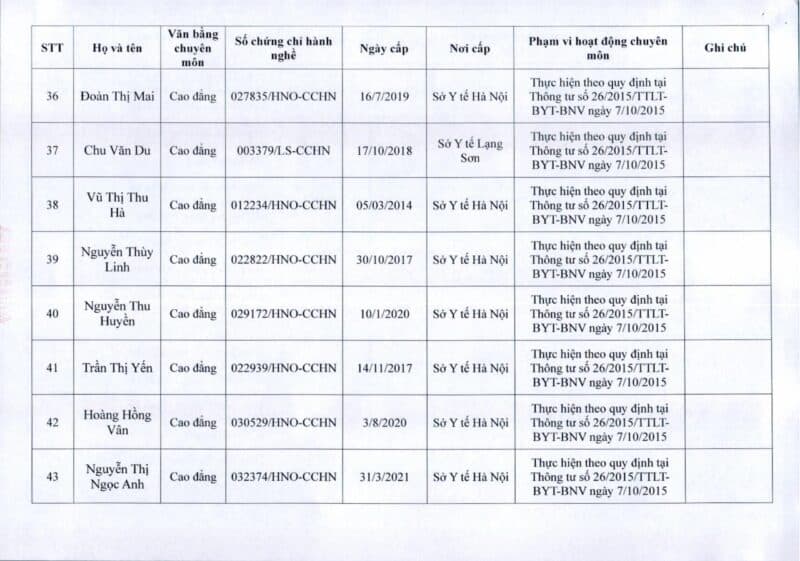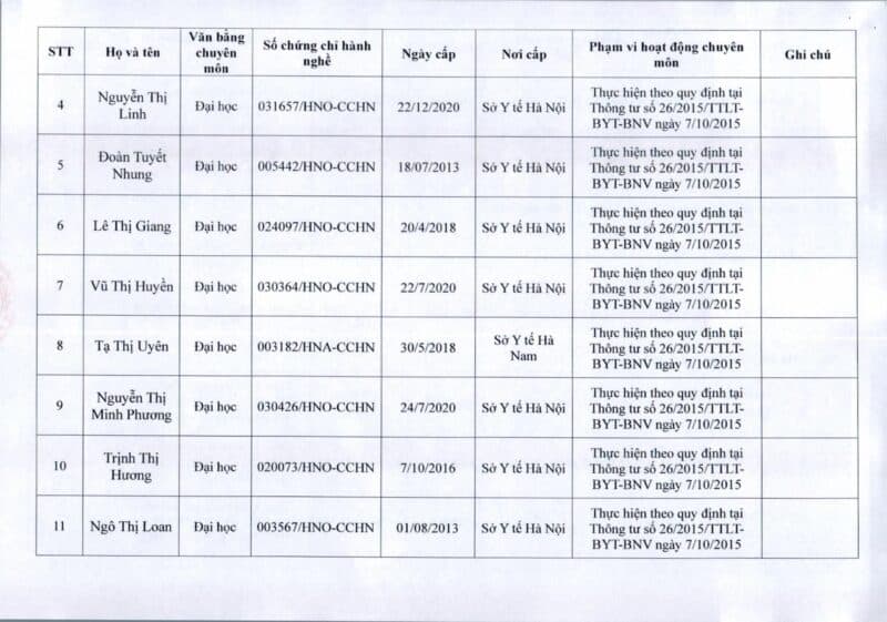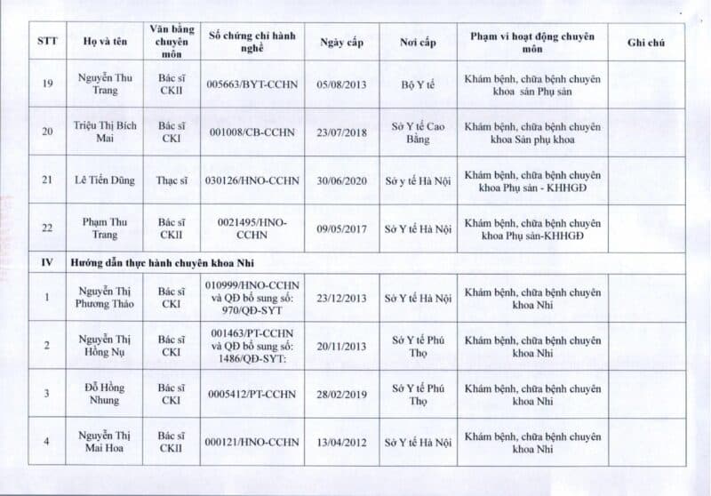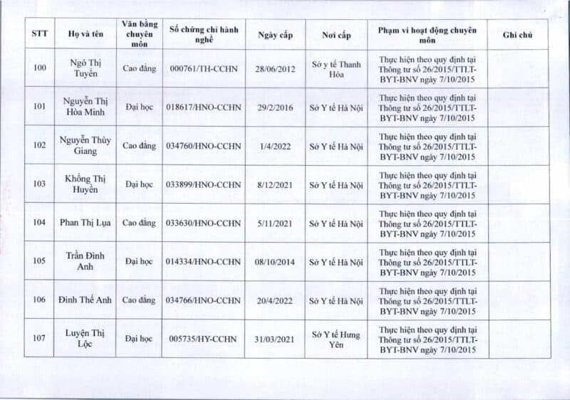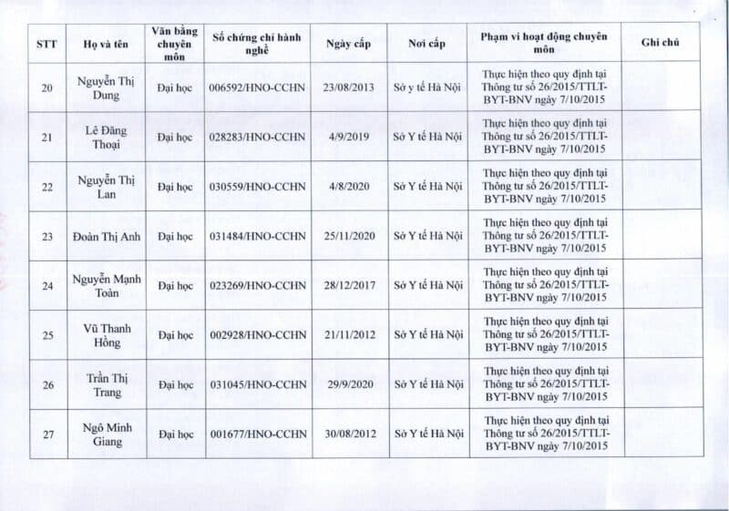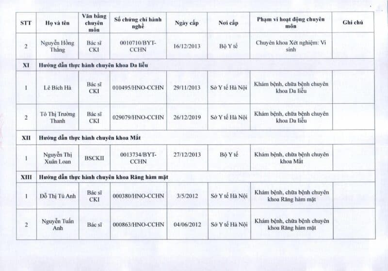 Bệnh viện Đa khoa Quốc tế Thu Cúc thông báo về việc thay đổi danh sách người hướng dẫn thực hành theo Thông báo số 57/2025/TB-BVTC của Giám đốc bệnh viện ngày 8/12/2025.