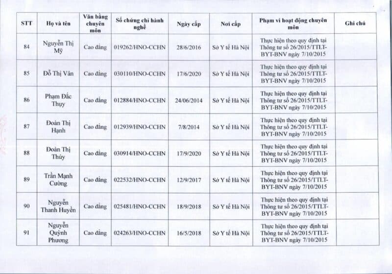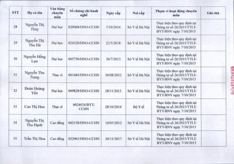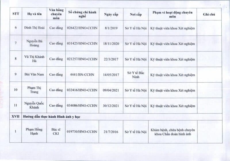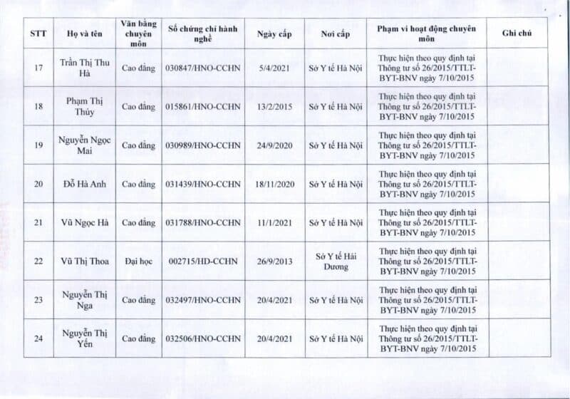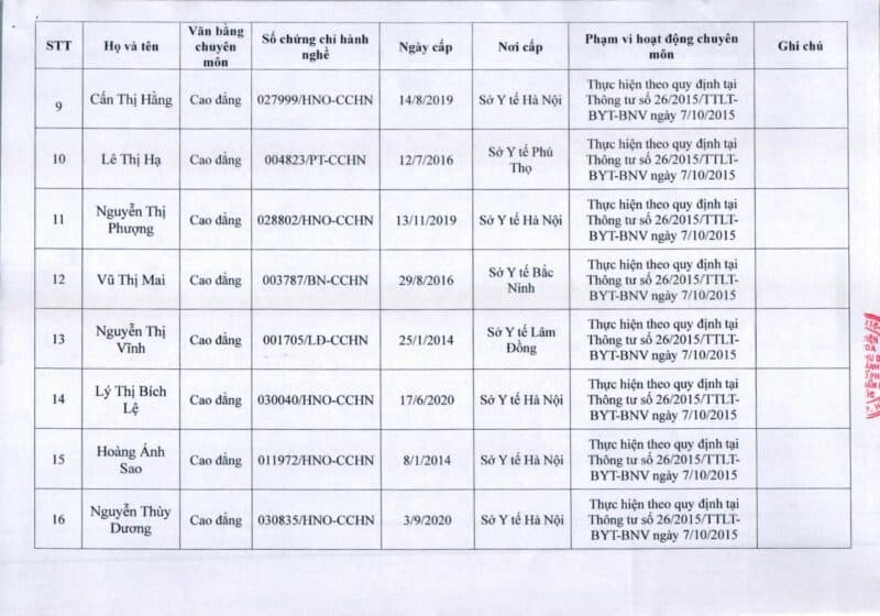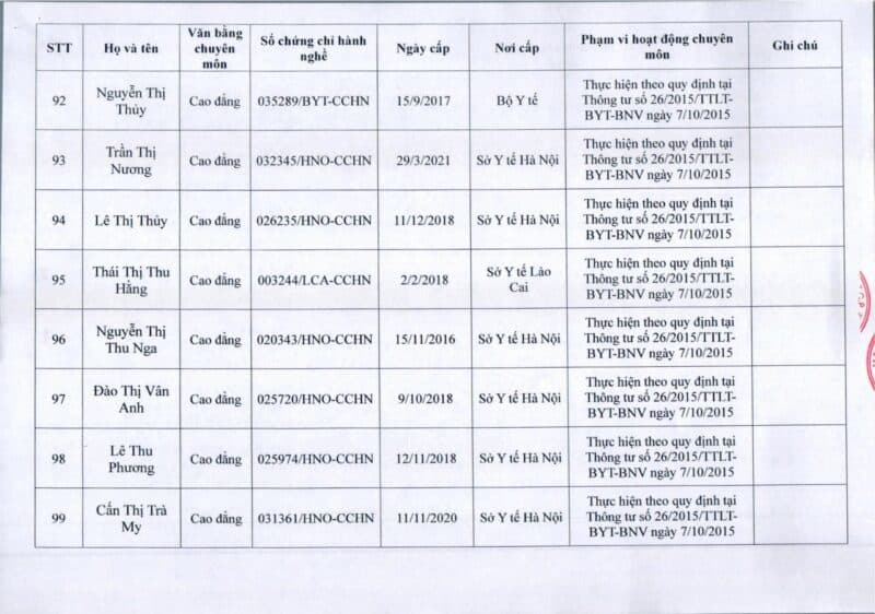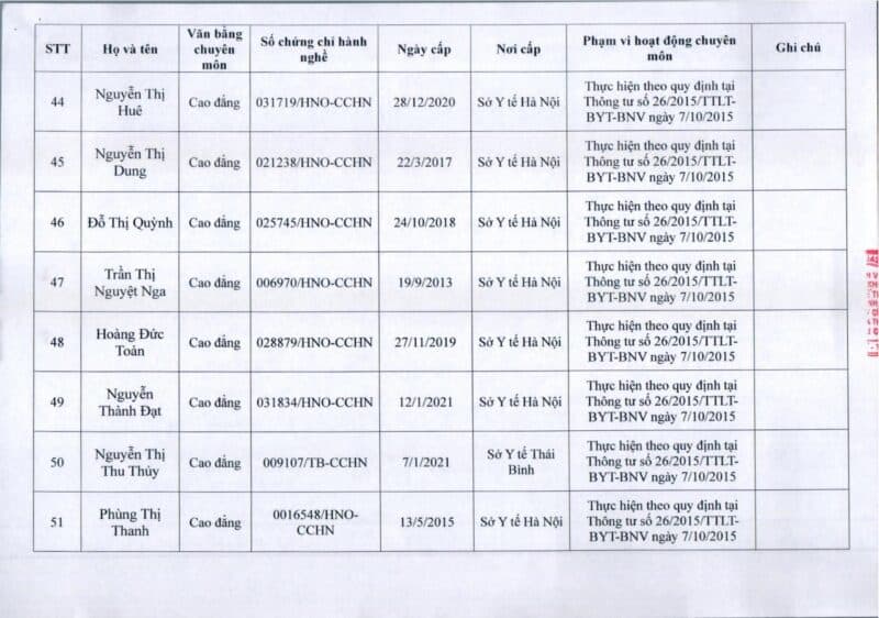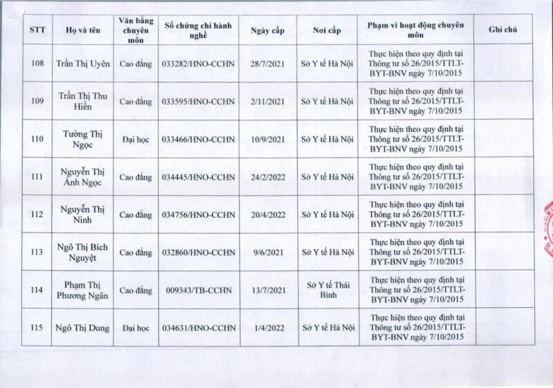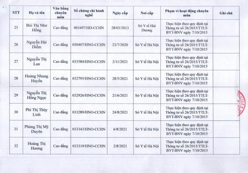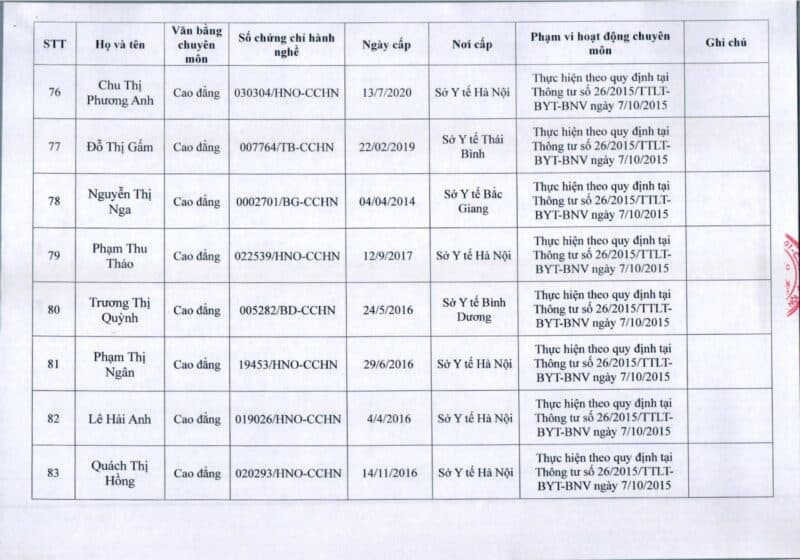 Bệnh viện Đa khoa Quốc tế Thu Cúc thông báo về việc thay đổi danh sách người hướng dẫn thực hành theo Thông báo số 57/2025/TB-BVTC của Giám đốc bệnh viện ngày 8/12/2025.