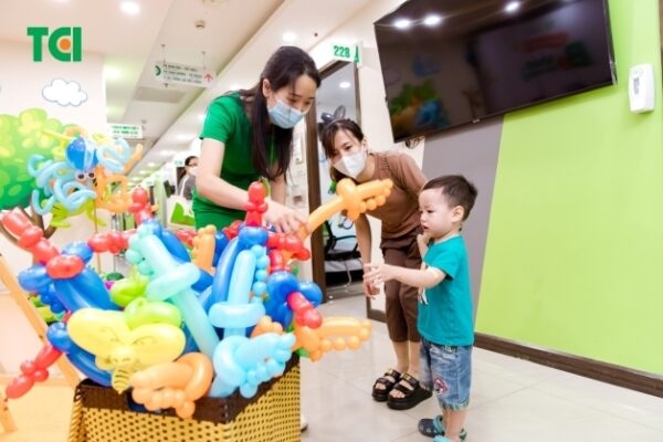 Nhằm khích lệ động viên tinh thần của các bé đang phải điều trị tại viện cũng như các em đến khám, Thu Cúc TCI đã dành trọn một ngày để tổ chức ngày hội “Bé khỏe – Bé tài năng” với nhiều hoạt động hấp dẫn dành tặng các bé như: