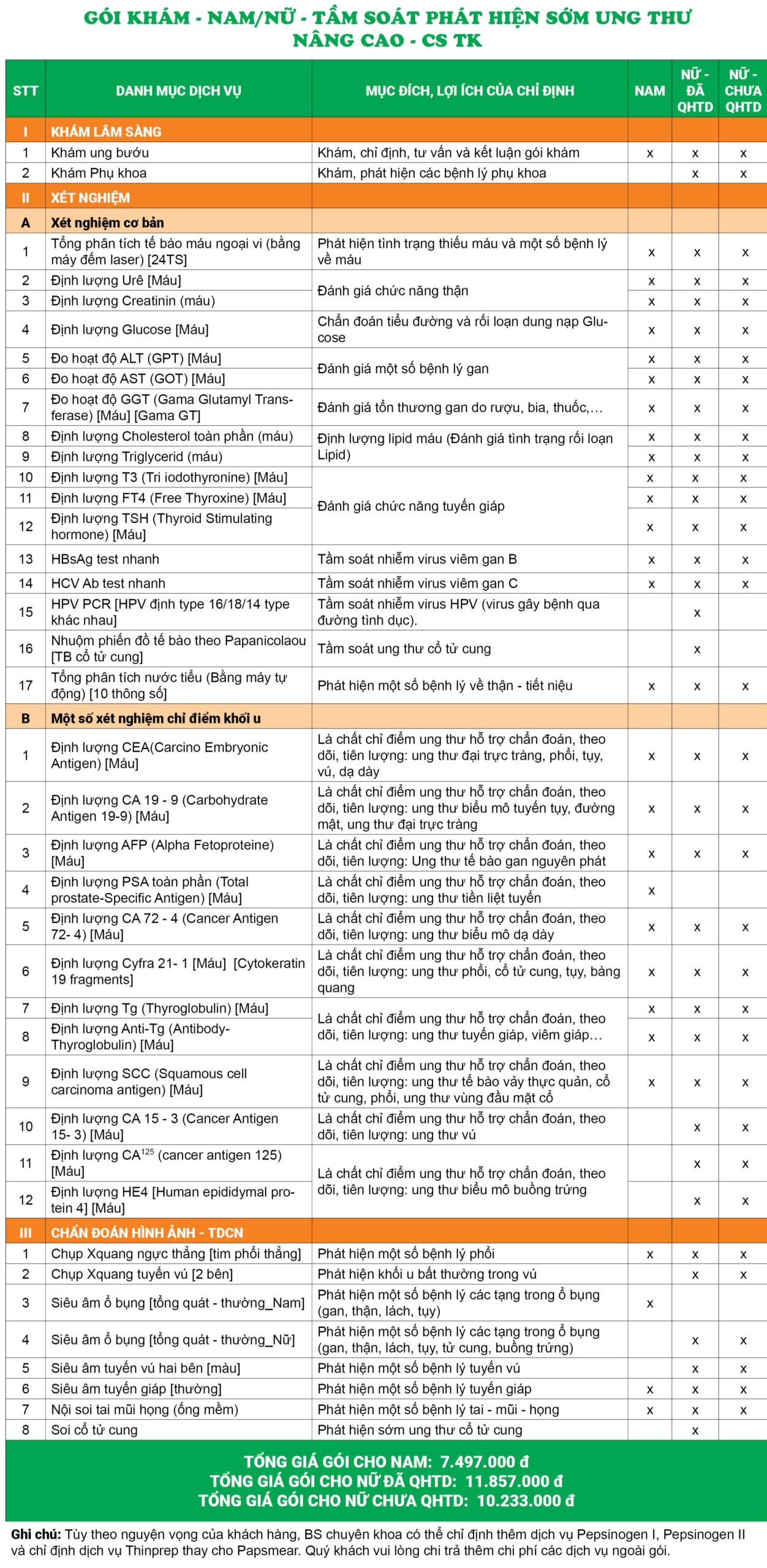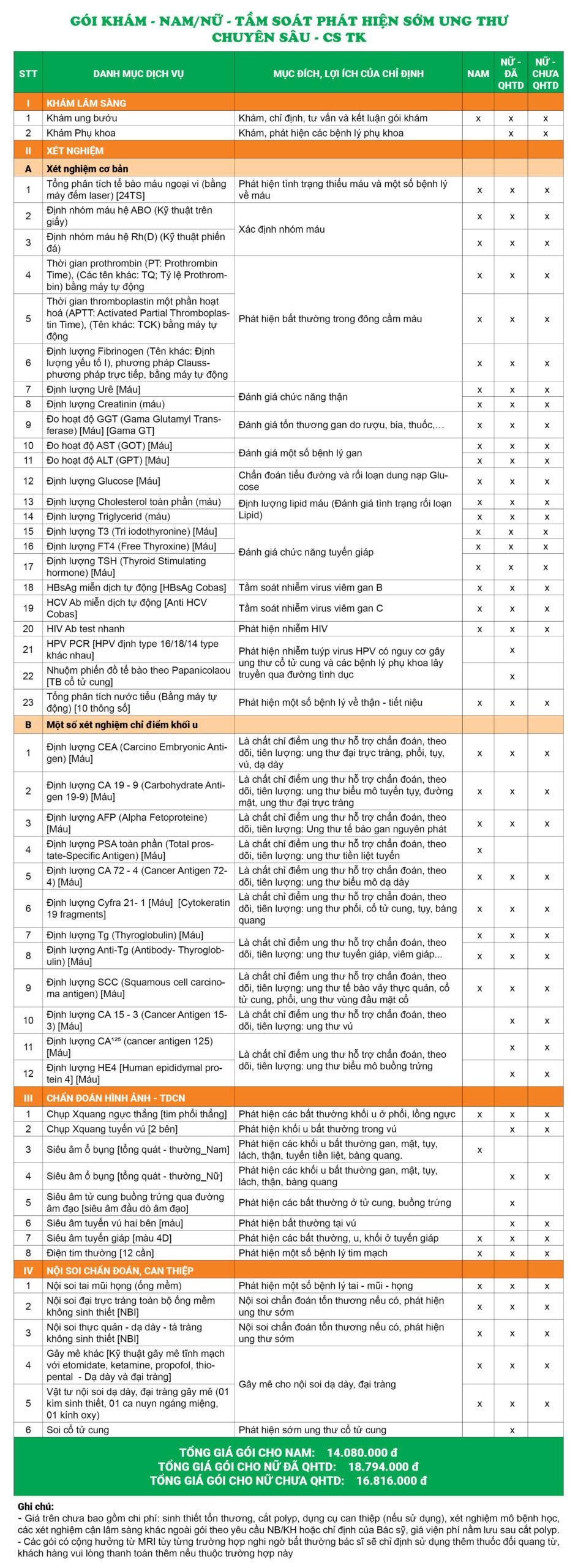 13 gói khám chi tiết - Chẩn đoán sớm ung thư
