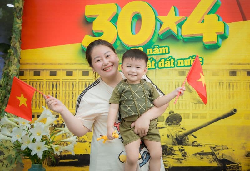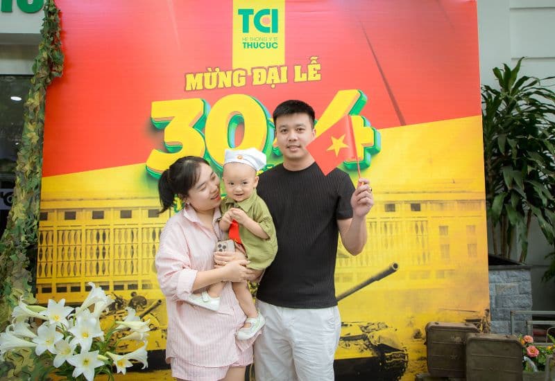 Không chỉ dành riêng cho các bé, chuỗi sự kiện tại TCI còn mở rộng thêm hoạt động chụp ảnh dành cho người lớn. Trong không gian Photobooth đậm chất lịch sử, phụ huynh và người thân có thể tự do chụp ảnh kỷ niệm với trang phục thường ngày, không yêu cầu hóa trang hay quân phục như trẻ nhỏ. Đây là dịp để cả gia đình cùng nhau ghi lại khoảnh khắc gắn kết trong bối cảnh ý nghĩa của ngày lễ 30/4, tạo nên một bộ ảnh giàu cảm xúc, hòa chung tinh thần “50 năm non sông liền một dải”.