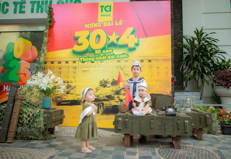 Mừng 50 năm Ngày Giải phóng miền Nam, thống nhất đất nước (30/4/1975 – 30/4/2025), Hệ thống Y tế Thu Cúc TCI tổ chức sự kiện chụp ảnh miễn phí tại Photobooth. Sự kiện không chỉ dành cho các bé từ sơ sinh, trẻ em, mà người lớn cũng có thể tham gia. Đây là cơ hội để các gia đình lưu giữ những khoảnh khắc ý nghĩa, kết hợp chăm sóc sức khỏe và giáo dục truyền thống, giúp các bé từ những năm đầu đời, đã cảm nhận được giá trị của lịch sử dân tộc.