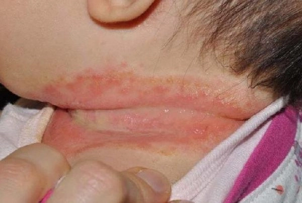 Mùa nóng, mồ hôi tích tụ lâu ngày dễ gây hăm kẽ ở trẻ. Thường gặp ở các vị trí có nếp gấp như ngấn cổ, nách, bẹn, nếp gấp cổ chân, cổ tay. (ảnh minh họa)