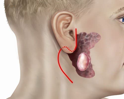 Hình ảnh ung thư tuyến mang tai, chiếm 70 – 85% các trường hợp ung thư tuyến nước bọt.