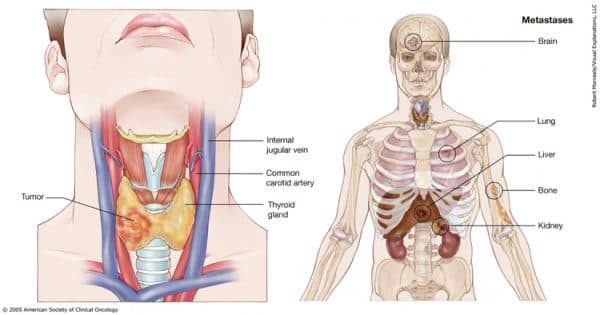 Ung thư tuyến giáp giai đoạn cuối có thể di căn rộng đến phổi và một số cơ quan khác như xương, gan, thận…
