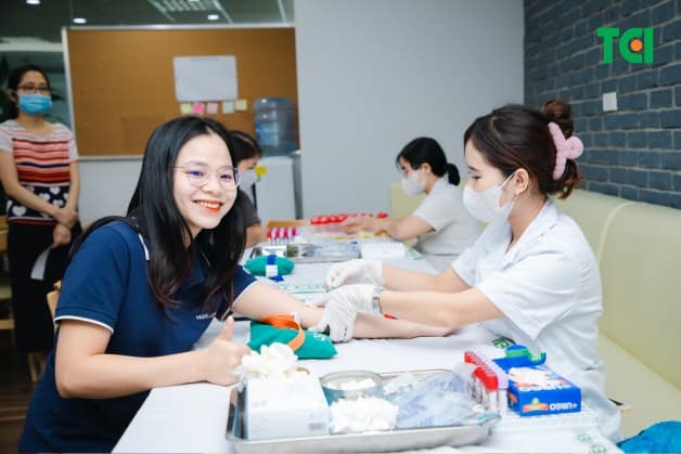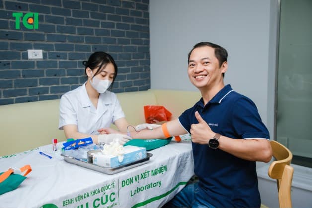 Khi lựa chọn khám sức khỏe tại Thu Cúc TCI, toàn thể cán bộ nhân viên của công ty Humax Vinha được trực tiếp trải nghiệm tiện ích lấy mẫu xét nghiệm ngay tại đơn vị làm việc. Quy trình thực hiện lấy mẫu giống y hệt như tại phòng khám và được đảm bảo về việc bảo quản mẫu xét nghiệm, không để xảy ra tình trạng sai sót kết quả thăm khám cuối cùng.