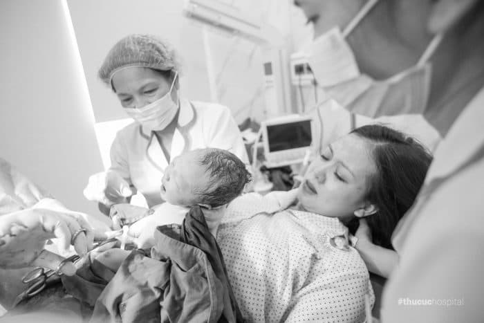Đến viện, mình được các cô điều dưỡng đưa đi thăm khám và đã mở được 5 phân. Sau đó được các cô đưa vào phòng sinh luôn, “do đã được tham quan từ trước nên mình không cảm thấy lá lẫm với phòng sinh, ngược lại mình cảm thấy khá thoải mái. Bác sĩ và mọi người trong ekip liên tục động viên, thăm hỏi nên mình cũng cảm thấy đỡ lo hơn” – Chị Giang chia sẻ.