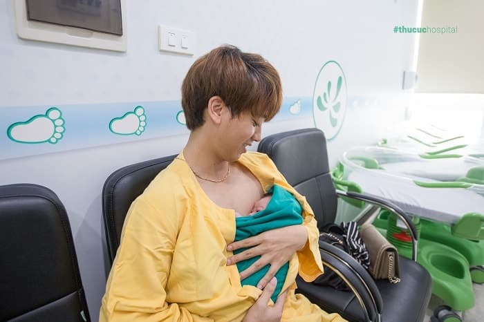Điều đặc biệt chỉ có riêng ở Thu Cúc đó là em bé khi sinh ra không chỉ được áp da với mẹ mà còn được da kề da với bố tại phòng chuyên biệt