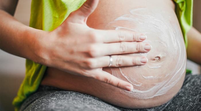 Sử dụng kem dưỡng ẩm có nguồn gốc từ thiên nhiên cũng giúp mẹ bầu phần nào giảm bớt được khó chịu ở da bụng