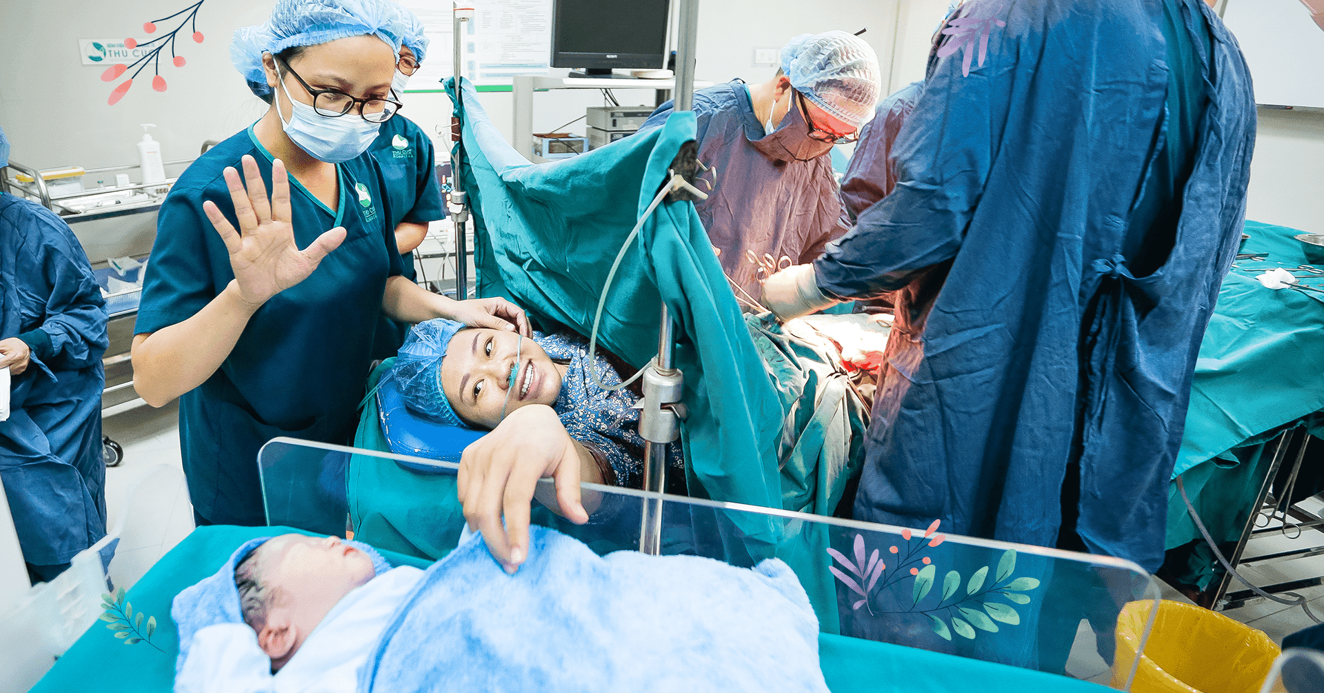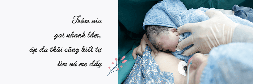 Khi em bé ra đời, bác sĩ cho hai mẹ con áp da mà lòng cứ lâng lâng khó diễn tả. Thằng nhóc sau hơn 9 tháng trời cũng chịu ra để bà mẹ đang nằm trên bàn mổ cũng sung sướng đến chảy cả nước mắt vì thấy con yêu khỏe mạnh, an toàn.