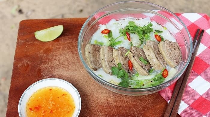 Bước 2: Nấu nước vừa luộc vịt với gạo và đậu xanh thành cháo nhừ.