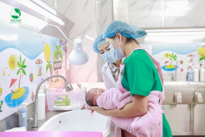 MC Diệp Chi chia sẻ thêm: “ Đến thăm người thân vào đúng giờ các bé được đi tắm, tôi đã có cơ hội được vào tận phòng tắm chuyên biệt và chứng kiến toàn bộ quá trình tắm bé. Nhiệt độ trong phòng luôn giữ mức ổn định, phù hợp với thân nhiệt của trẻ sơ sinh. Điều dưỡng viên thao tác nhẹ nhàng, chuyên nghiệp giúp các bé thoải mái thư giãn”.