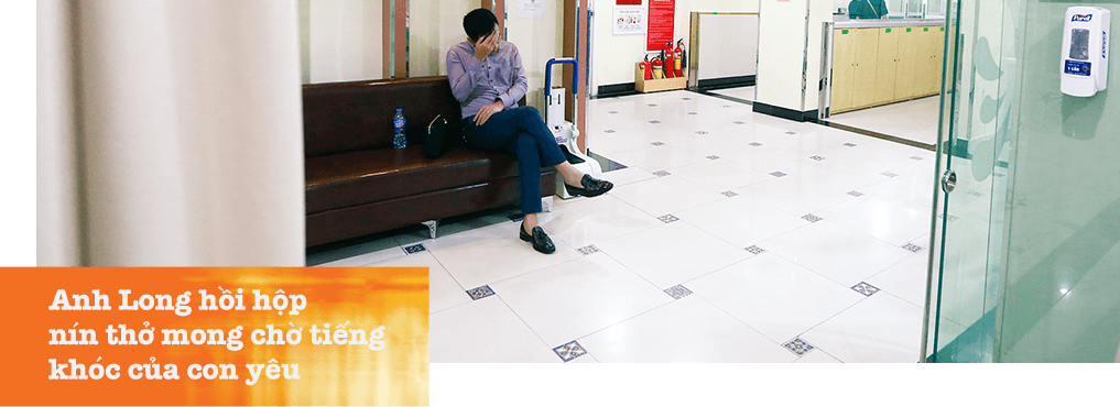 Ngồi trên ghế đợi ngoài hành lang Bệnh viện ĐKQT Thu Cúc, anh Long hồi hộp, lắng nghe chờ đợi tiếng khóc chào đời của con trong không gian tĩnh lặn yên ắng về đêm.