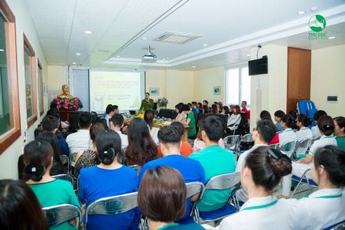 Tại buổi tập huấn, giảng viên Đại học PCCC cùng các cán bộ chiến sĩ Đội PCCC Quận Tây Hồ cùng phối hợp giảng dạy và diễn tập. Đông đảo các bác sĩ, điều dưỡng, cán bộ nhân viên bệnh viện Thu Cúc đã hào hứng và nghiêm túc tham gia tập huấn.