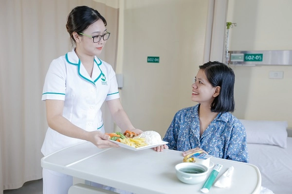 Những món ăn bổ dưỡng tại nhà hàng không chỉ phục vụ khách hàng và người nhà đến thăm khám mà còn phục vụ cho các bệnh nhân đang điều trị nội trú. Không cần phải đến trực tiếp tầng 8, chỉ cần order thông qua lễ tân, rất nhanh sau đó sẽ có nhân viên mang đồ ăn tới từng phòng điều trị cho người bệnh. Thời gian mở cửa của nhà hàng là từ 6h – 21h. Riêng với các sản phụ sẽ là 24/24.